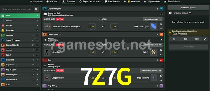 O 7Z7G oferece uma grande seleção de opções de apostas em e-sports com probabilidades competitivas
